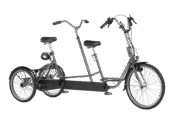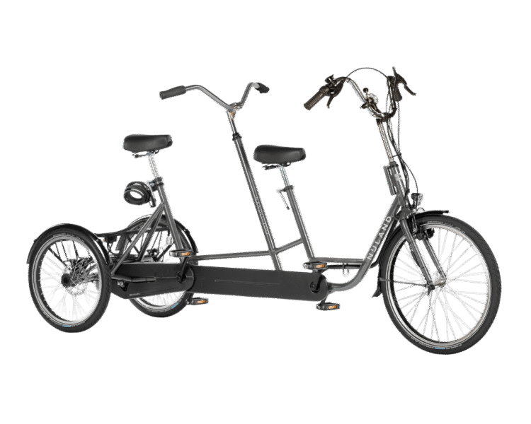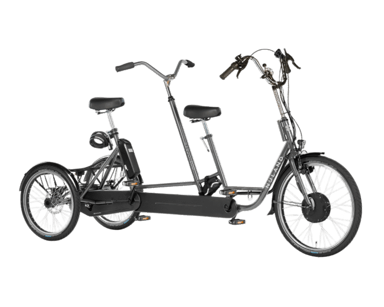 De Nando Too voorbesturing is een driewieltandem die speciaal is ontworpen voor comfort en veelzijdigheid. Dit model is ideaal voor een begeleider met een passagier, waarbij de voorste persoon ook kan sturen. De Nando Too is een grotere uitvoering dan de Nindo Too, wat het geschikt maakt voor grotere mensen achterop. Wat deze tandem uniek maakt, is de ingenieus ingebouwde koppeling die in- en uitgeschakeld kan worden. Deze koppeling biedt de mogelijkheid om de achterste persoon vrij te schakelen, wat extra flexibiliteit en controle tijdens het rijden mogelijk maakt.