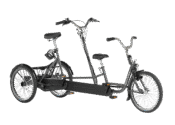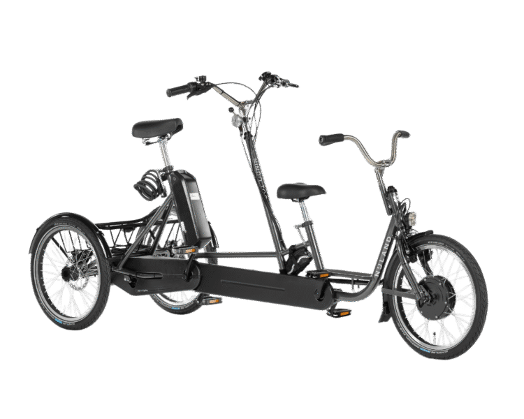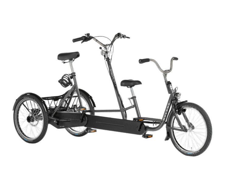 De Nindo Too is een veelzijdige driewieltandem, ontworpen met het oog op comfort en gebruiksgemak. Dit model is perfect voor situaties waarin een begeleider samen met een kind fietst, waarbij de achterste persoon kan sturen. De drie wielen van de Nindo Too zorgen voor uitstekende stabiliteit, terwijl de slimme koppeling tussen de voor- en achterste persoon het mogelijk maakt om vrij te schakelen. Hierdoor biedt de Nindo Too zowel flexibiliteit als veiligheid tijdens gezamenlijke ritten.